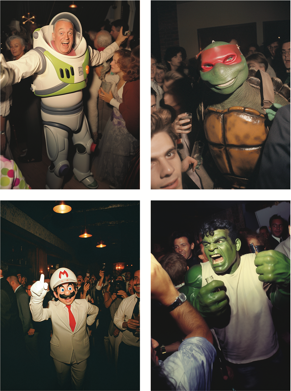 Ma passion pour la photographie, notamment les vieilles photos, m'a conduit à créer des images anachroniques fusionnant la culture pop moderne avec l'ambiance des années 30 à 80 grâce à Midjourney.